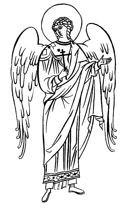 За спиною Ангела – золоті крила, символ швидкості його переміщення.